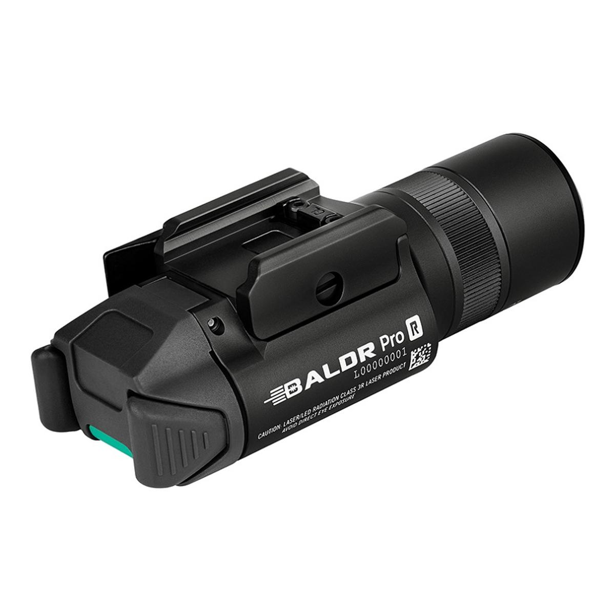 Zielony laser o mocy <5mW ułatwia szybkie namierzenie celu bez konieczności zgrywania muszki ze szczerbinką. Model Baldr Pro R wyposażono w szynę montażową z możliwością regulacji i dopasowania do większości modeli pistoletów z szyną akcesoryjną w standardzie 22 mm (weaver/ picatinny/ MIL-STD-1913). System stalowych zacisków pozwala na szybkie zamocowanie latarki na broni.