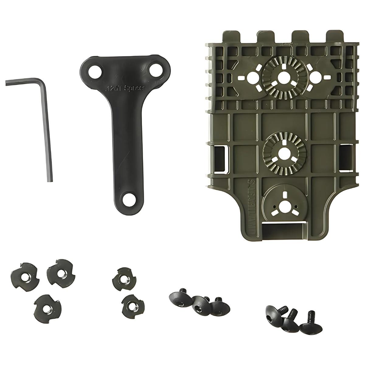 System (widelec i platforma) współpracuje z dowolnym etui Safariland® z 2 otworami lub kaburą z 3 otworami.