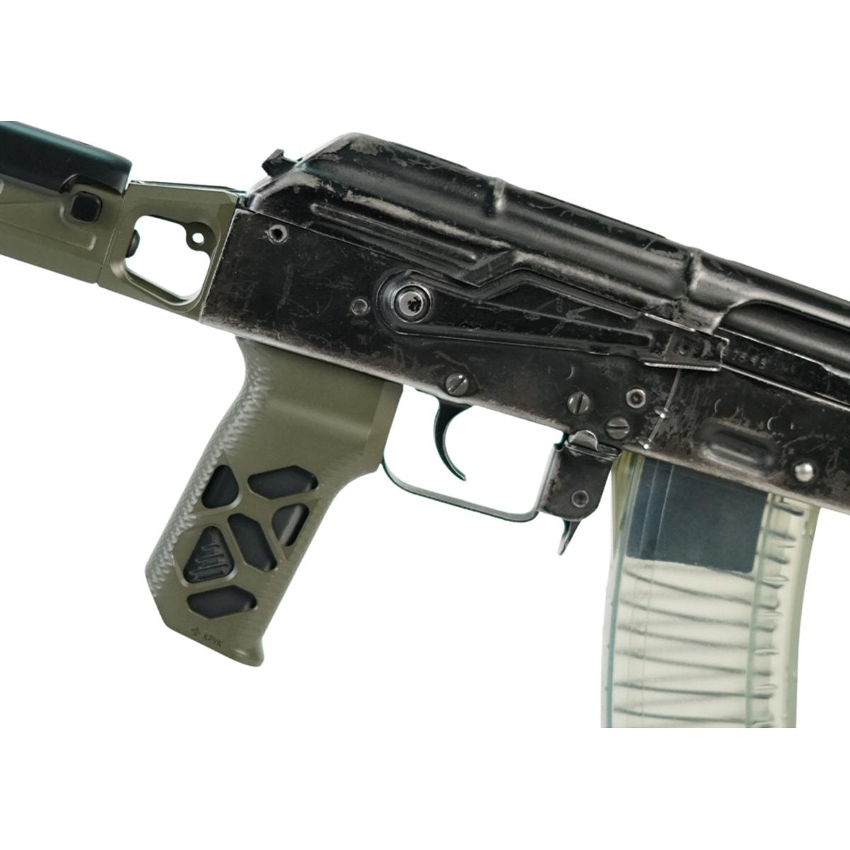 Lekki, wytrzymały i ergonomiczny chwyt pistoletowy dla karabinków rodziny AK z kątem nachylenia 10 stopni.