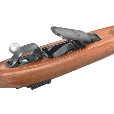 - Solidna stalowa płyta umożliwia łatwy rozładunek bez konieczności umieszczania każdego naboju w komorze. Posiada wygrawerowane logo Ruger i opatentowany zatrzask, który jest równo z osłoną spustu uniemożliwiając przypadkowe zrzucenie amunicji.