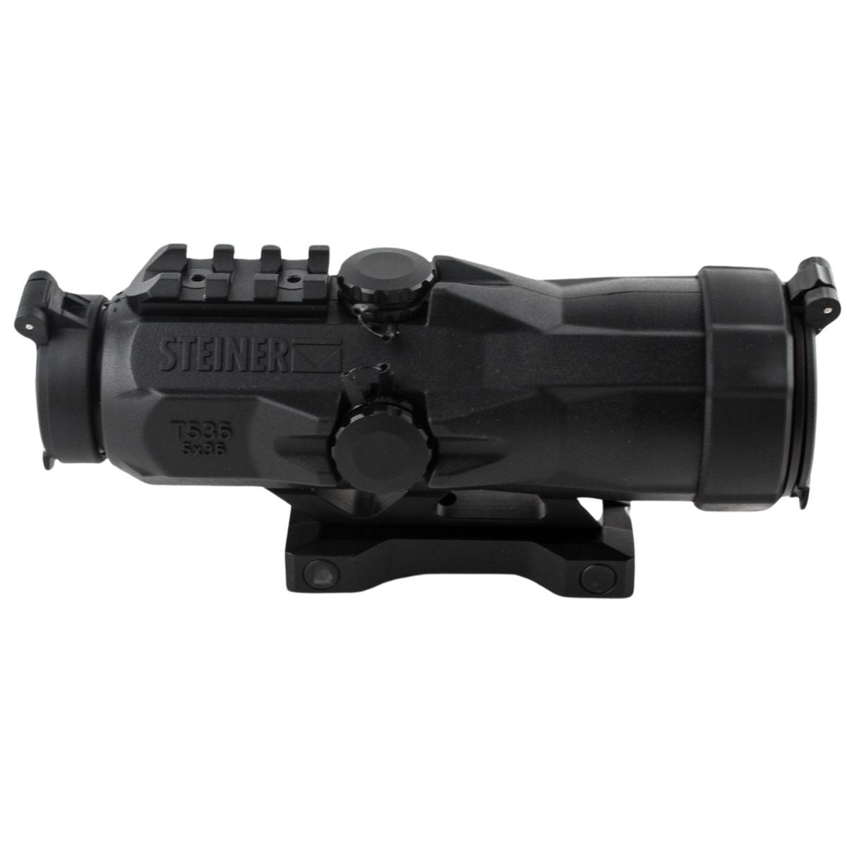 Kolimatory Steiner T-Sights zostały zaprojektowane pod karabiny AR, są bardzo krótkie i lekkie, a dzięki gumowanej obudowie posiadają zwiększoną wytrzymałość. Podświetlana siatka Rapid Dot i 5-krotne powiększenie umożliwiają użytkownikowi szybkie i skuteczne dojrzenie celu.