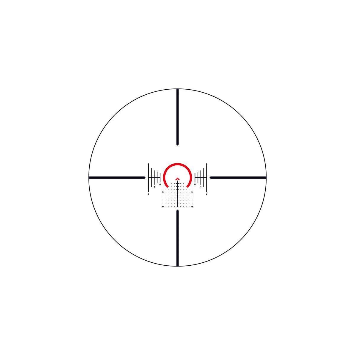 Luneta została wyposażona krzyż umieszczony w pierwszym planie optycznym, co jest optymalnym wyborem do przewidzianych dla niej zastosowań. Rozwiązanie tego typu zachowuje realne proporcje znaku celowniczego podczas zmiany powiększenia, dzięki czemu umożliwia wiarygodną ocenę odległości do celu. Ponadto w przypadku powiększeń z dołu zakresu krzyż pozostaje niewielki, nie rozpraszając nas ilością detali i pozwalając na szybkie przenoszenie pomiędzy celami. Omawiany model oferuje wszechstronny krzyż ACSS Griffin M6 stworzony z myślą o wykorzystaniu w lunetach typu LPVO. Siatka obejmuje centralny szewron otoczony kontrastową, czerwoną podkową znacząco usprawniającą szybkie namierzanie celu na bliskich dystansach oraz, podziałkę wyskalowaną w miliradianach, pozwalającą na wprowadzanie korekt zarówno na opad pocisku jak i działanie wiatru.