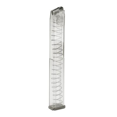 Magazynek przeznaczony do pistoletów Glock kalibru 9x19mm Para o pojemności 40 naboi od firmy ETS. Polimerowa konstrukcja jest lżejsza od magazynków stalowych, a półprzeźroczyste ścianki umożliwiają szybkie sprawdzenie ilości pozostałej amunicji.