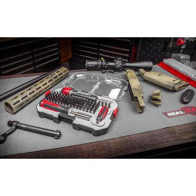 Zestaw śrubokrętów rusznikarskich Gunsmith Driver Master Set od firmy Real Avid to profesjonalne narzędzia w komplecie z 83 bitami wykorzystywanymi do konserwacji broni. Cały zestaw jest zapakowany w wytrzymałe pudełko z tworzywa wyposażone w dwa przedziały magnetyczne na drobne metalowe elementy.