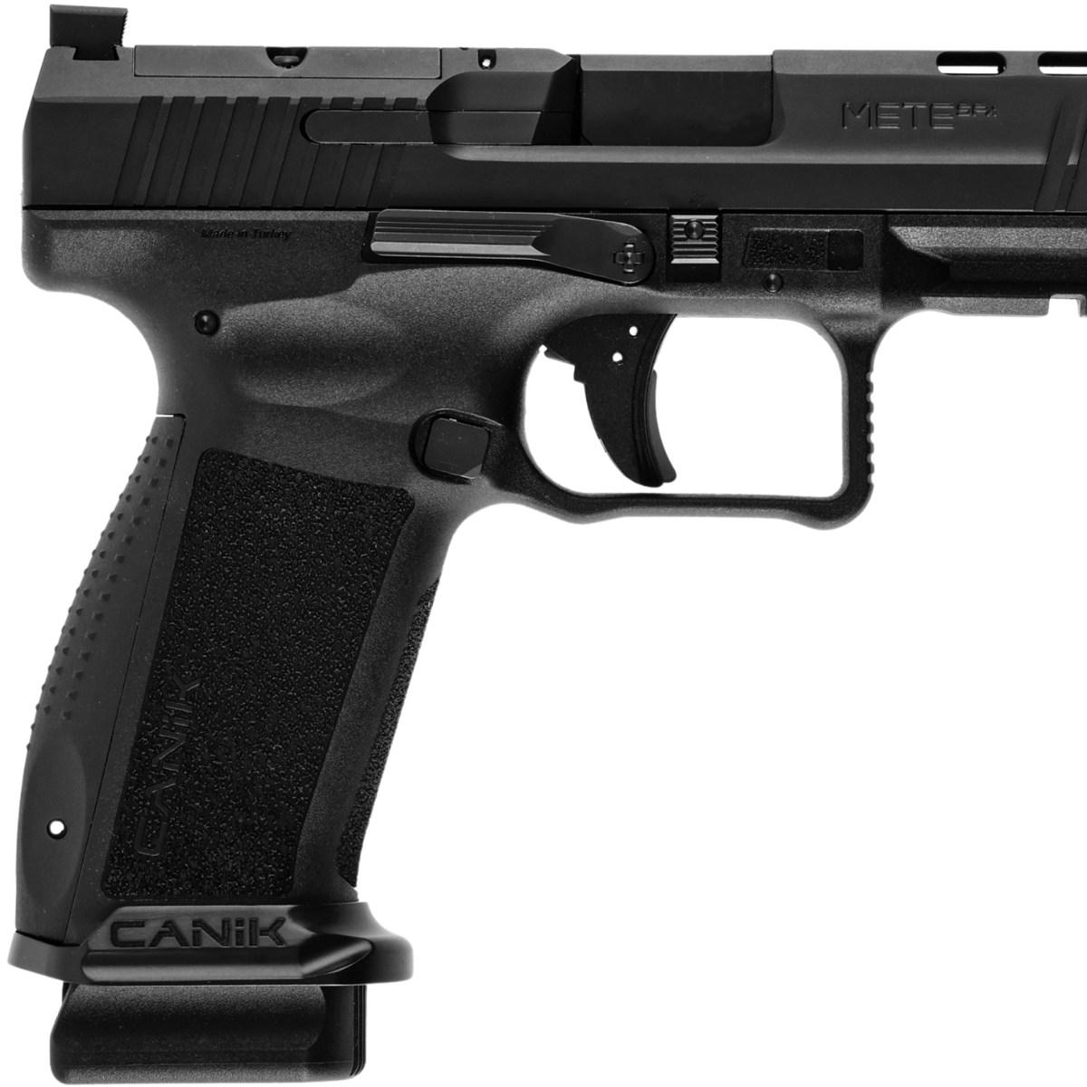 Pistolet Canik TP9 SFx Mete kal. 9mm Luger, wyprodukowany w tureckich zakładach zbrojeniowych. Nowość na rynku europejskim. Stał się bardzo popularnym pistoletem w Stanach Zjednoczonych i cieszy się bardzo dobrą opinią przez tamtejszych strzelców. Posiada bardzo bogate wyposażenie, firma Canik oferuje w komplecie z bronią, szybką kaburę kydex, zestaw do czyszczenia, dwa magazynki, baza montażowa pod micro dot, Co-Witness, szybkoładowacz magazynka, wymienną okładzinę rękojeści, przełącznik zrzutu magazynka dla lewo i prawo ręcznych.