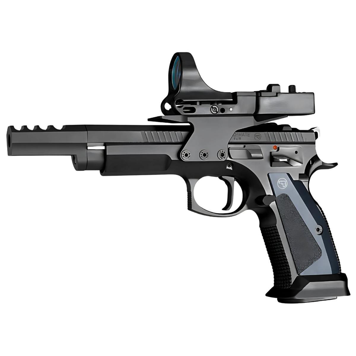Pistolet CZ 75 TS Czechmate jest bronią sportową inspirowaną precyzyjnie dostrojonymi, niestandardowymi pistoletami elitarnych strzelców w otwartej dywizji IPSC. Wszystkie komponenty są mistrzowsko obrabiane i dopasowywane, docierane i testowane. Każdy pistolet jest dostarczany z bogatym zestawem akcesoriów, w tym z bocznym mocowaniem C-more dla celownika typu red dot i regulowaną podpórką pod kciuk.