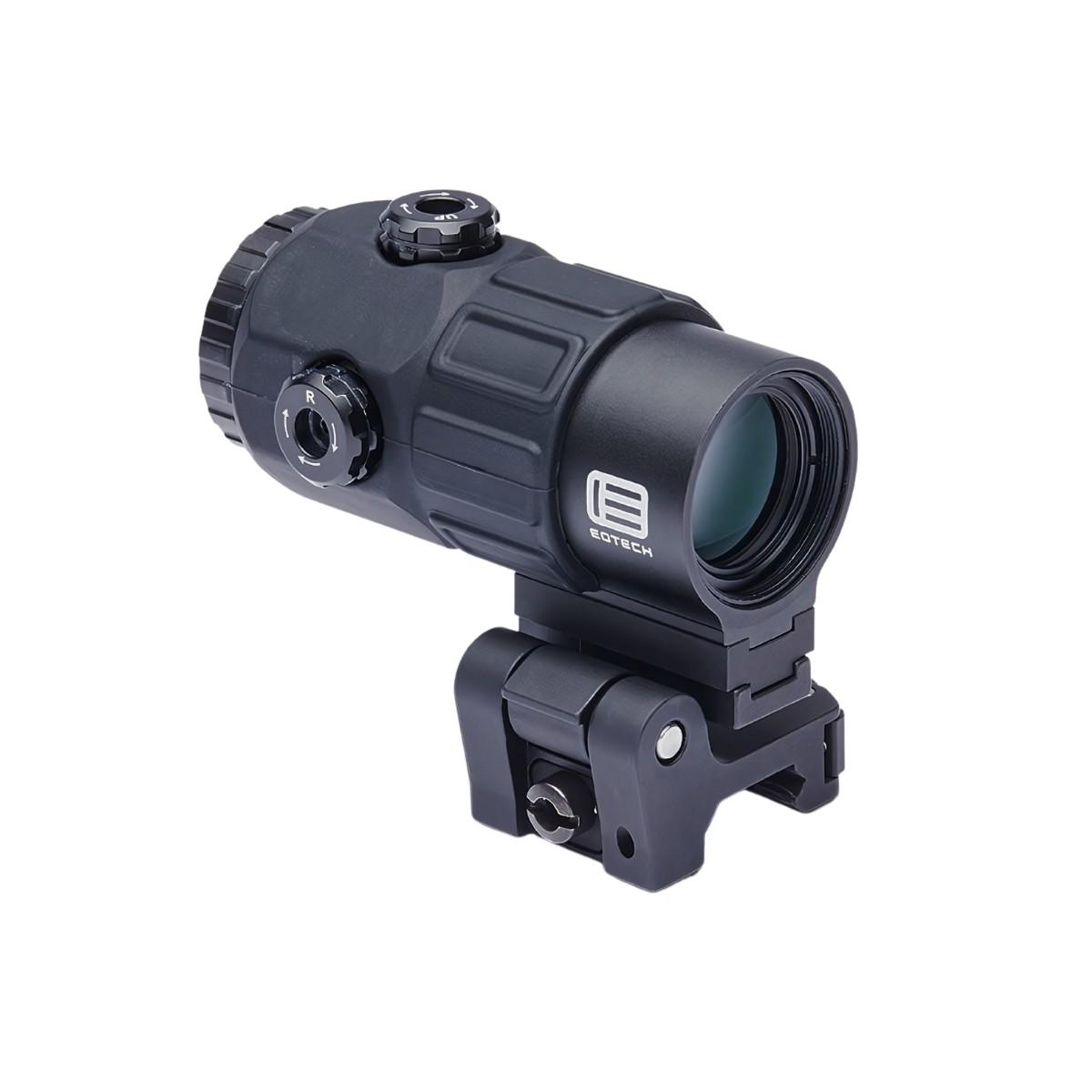 Powiększalnik Eotech G45 STS jest zmodyfikowaną wersją modelu G33 – ma taką samą wagę, lecz oferuje dodatkowe 5-krotne powiększenie ułatwiające celowanie z dużej odległości. Dzięki opcji regulacji w pionie i poziomie parametry lupy można dostosować do własnych potrzeb bez konieczności stosowania narzędzi. Dzięki systemowi Switch-to-Side użytkownik ma możliwość szybkiej zmiany powiększenia w zakresie od 1× do 5×. Powiększalnik jest przeznaczony do użytku ze wszystkimi kolimatorami marki Eotech. Odznacza się odpornością na zanurzenie do głębokości 10 m. Działa bez konieczności zasilania.