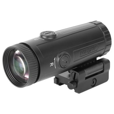 Powiększalnik pasuje do kolimatorów, celowników pryzmatycznych i holograficznych. Powiększalnik mocujemy za celownikiem optoelektronicznym (kolimatorem, holografem lub celownikiem pryzmatycznym), dzięki czemu obraz celu jest powiększony, możemy go lepiej zidentyfikować i precyzyjnie ostrzela.