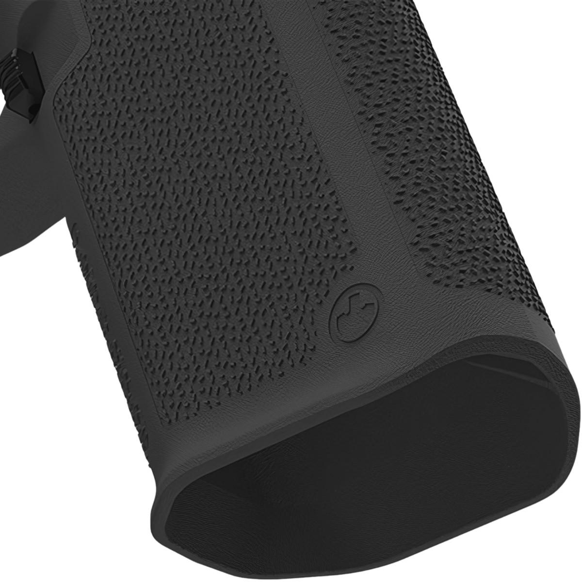 Fabryczny magwell (Lejek), wycięcie zwalniacza magazynka oraz zrzut o teksturowanej powierzchni umożliwiają szybszą i łatwiejszą wymianę magazynków.