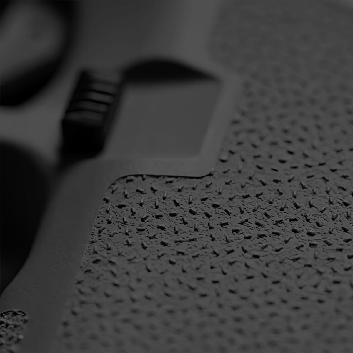 Wykonany z trwałego i mocnego polimeru chwyt EHG RG9 posiada na przedniej, tylnej oraz bocznej części najnowszą teksturę Magpul TSP która w połączeniu z podciętym kabłąkiem spustu zapewnia lepszą ergonomię, kontrolę i niesamowitą przyczepność.