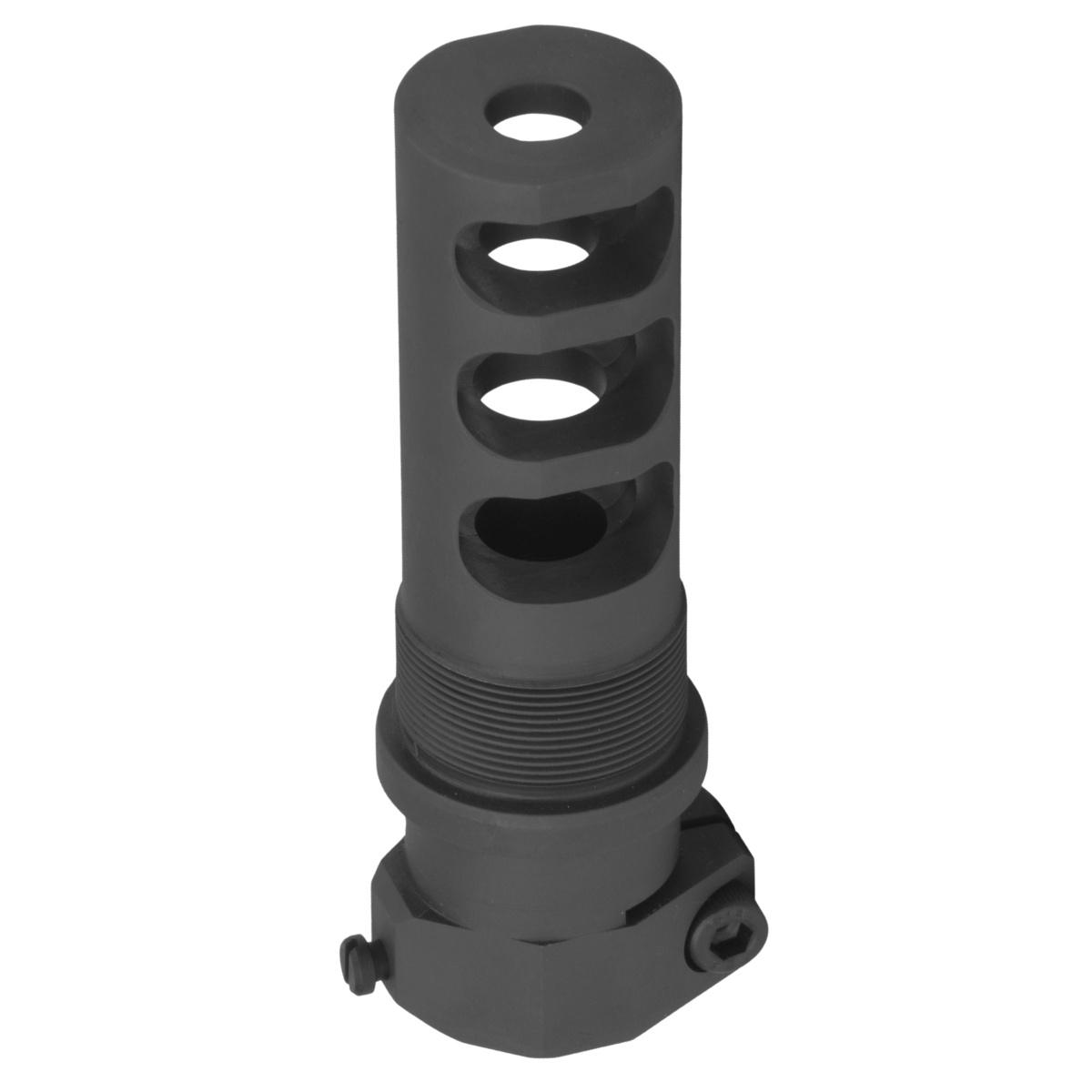 Kompensator 3-komorowy Kiedy potrzeba zamontować urządzenie wylotowe typu Monoblock na karabinie snajperskim, to ten kompensator stanowi właściwą bazę. Gdy nie mamy zamontowanego tłumika, znacznie zmniejsza odrzut, co bardzo pomaga przy precyzyjnym strzelaniu. Jest w pełni kompatybilny z tłumikiem Monoblock kal. .308WIN (SD-988320)