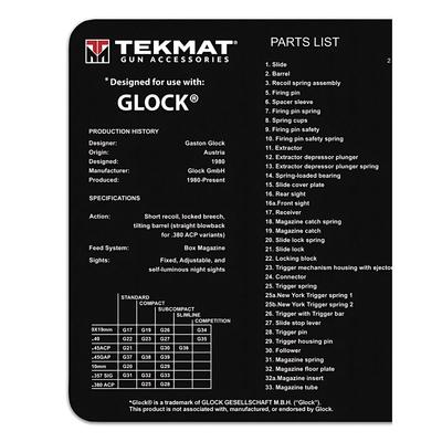 Mata rusznikarska przystosowana do konserwacji broni palnej, z grafiką dedykowaną pistoletom typu Glock. Wyprodukowana została przez firmę TekMat® z mocnego gumowego materiału, który dobrze trzyma się powierzchni stołu. Mata nie tylko chroni twoją broń i stół przed uszkodzeniem, ale również dodaje militarnego klimatu wnętrzu oraz pozwala utrzymać stanowisko w czystości, dzięki możliwości zmywania zabrudzeń pod bieżącą wodą.